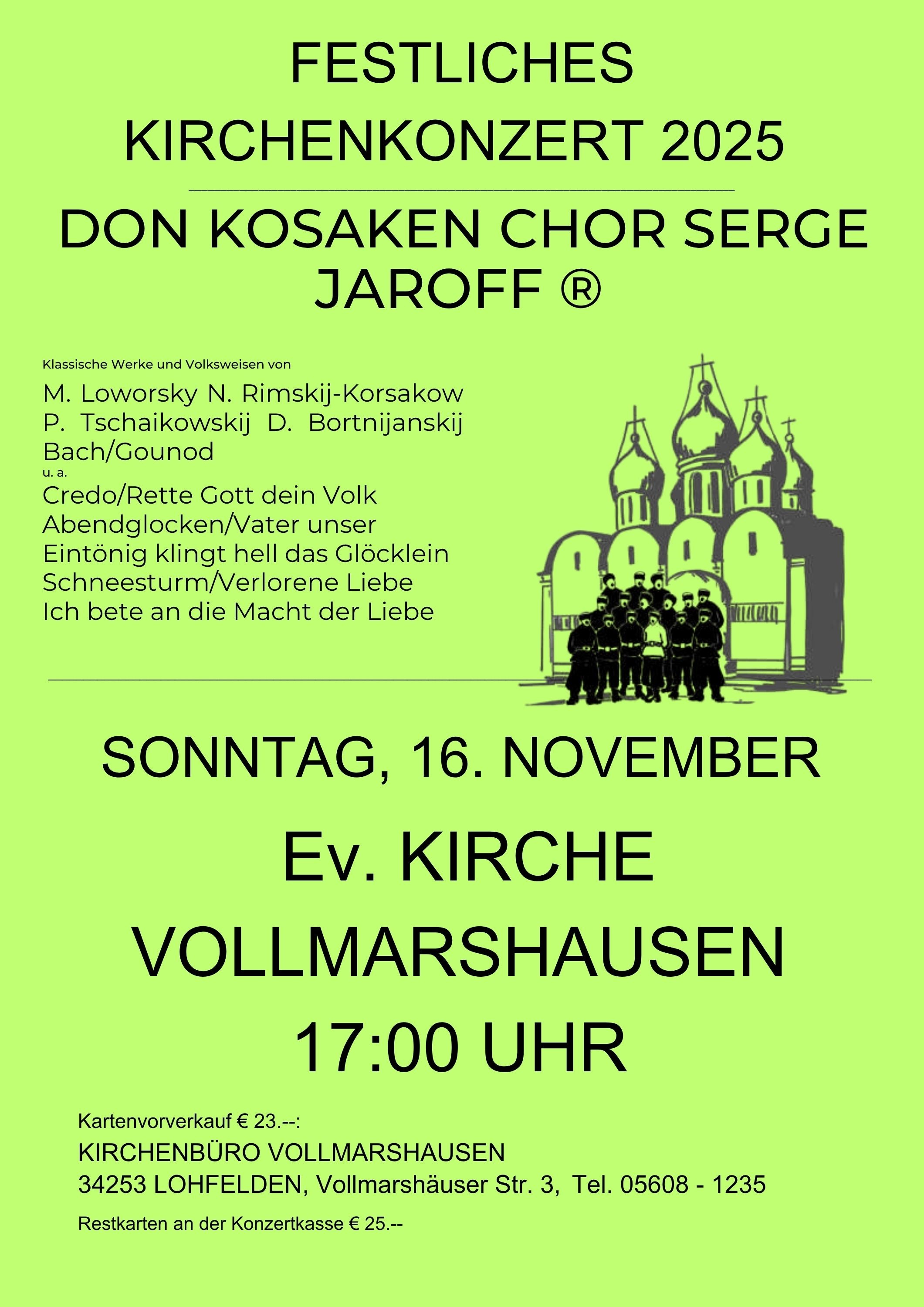 Dieser eindrucksvolle Traditions-Chor, wird in wenigen Wochen, getragen von der Begeisterung seines Publikums, stimmgewaltig mit einem bravourösen neuen Konzert-Programm zum ersten Mal in Vollmarshausen gastieren und wir alle freuen uns, dass dieses Konzert stattfinden kann.