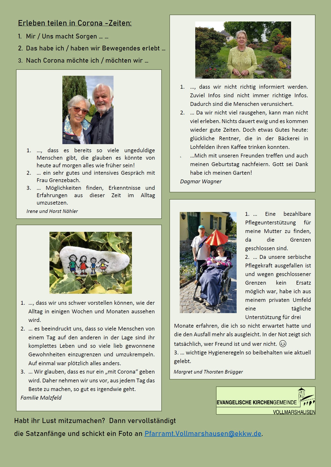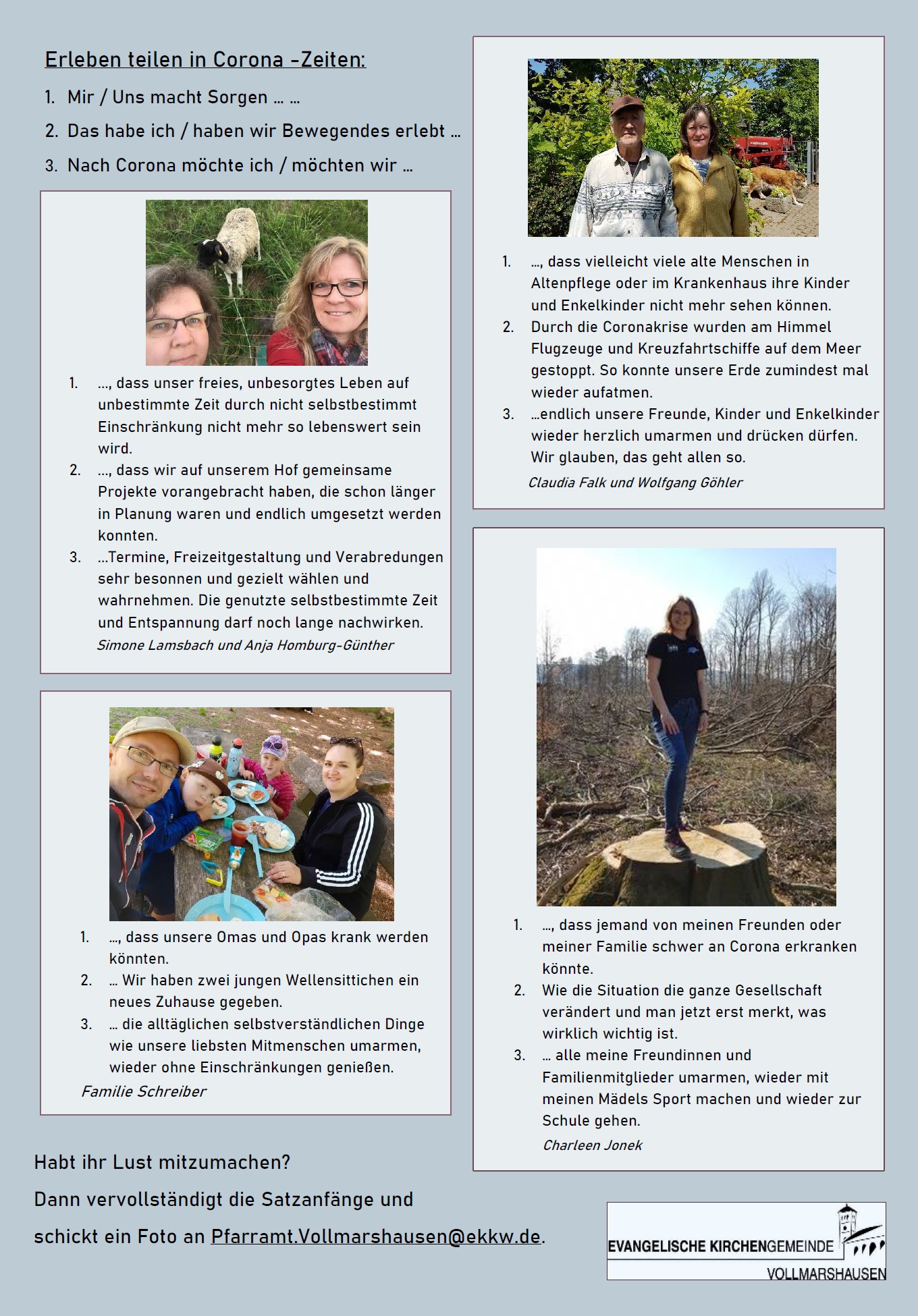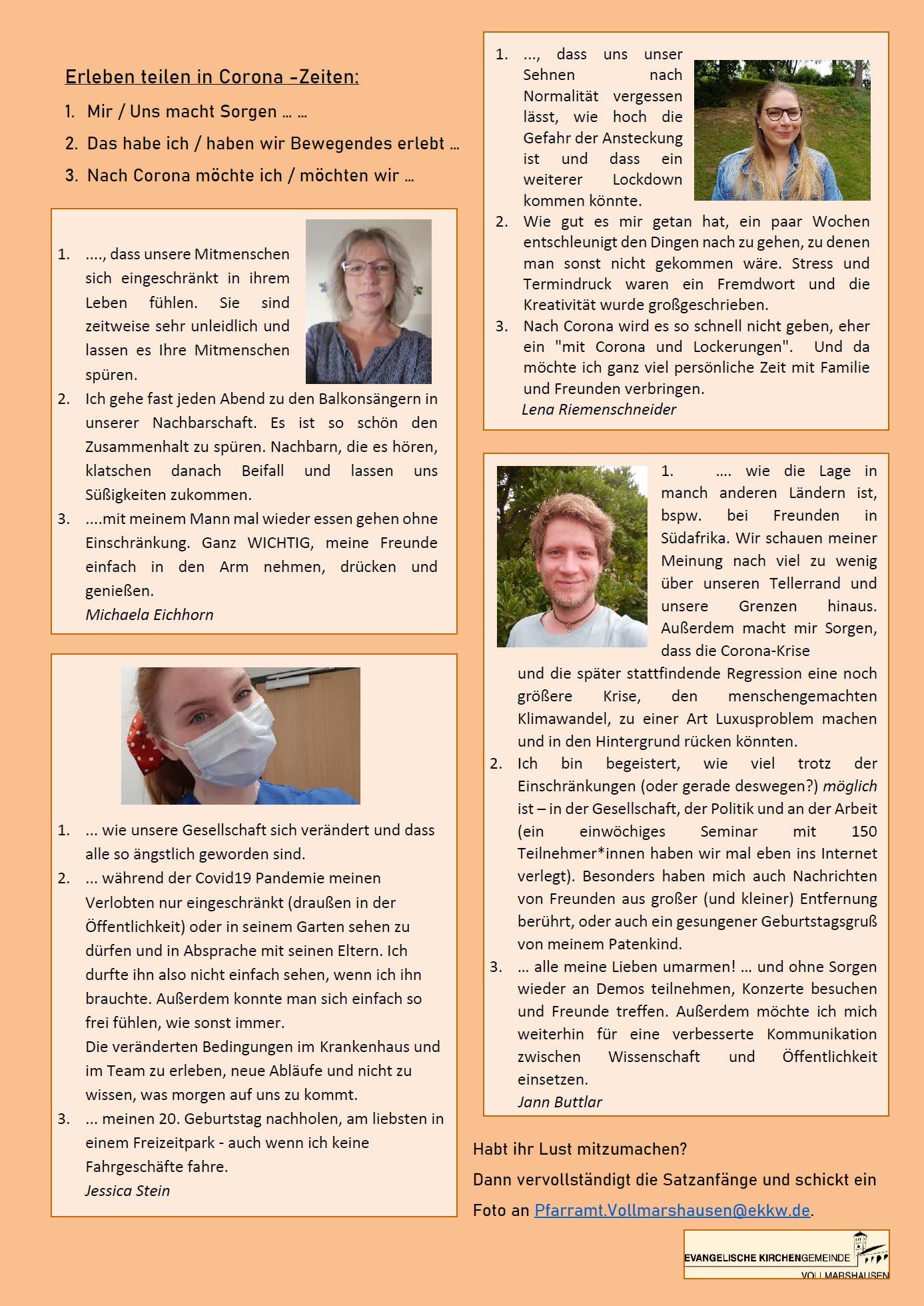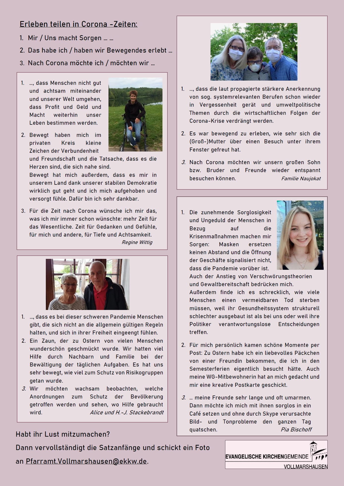 Geschichten, Eindrücke, Meinungen und Gefühle - Menschen erzählen über ihr Leben in der Zeit der Corona - Pandemie: