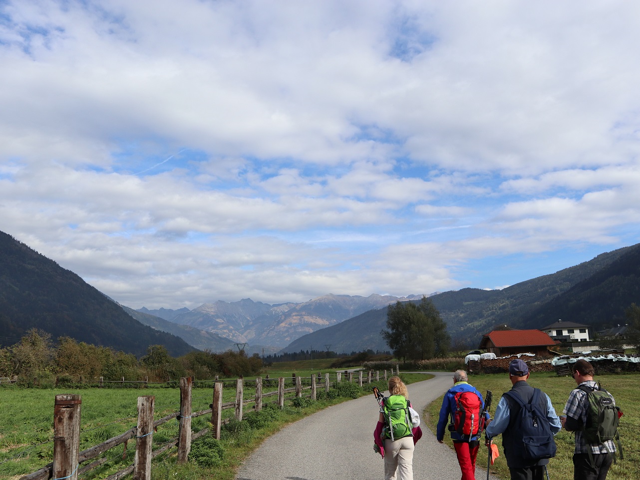 Am Montag, dem 8. Oktober 2018 stand dann wieder für viele eine weitere Pilgerwanderung auf dem Programm. Sie führte uns von St. Wolfgang auf dem Jakobsweg nach Fresach oberhalb des Millstätter Sees durch eine abwechslungsreiche Landschaft, mal durch Wälder, mal über freie Höhen, die uns wieder schöne Ausblicke bescherten und das alles bei traumhaft schönem Wetter unter strahlend blauem Himmel. Die Kurzstreckenpilgerer haben während dessen das Städtchen Lienz besichtigt und die Stadtluft mit ihren hübschen Plätzen und Häusern genossen. In Fresach trafen dann die ermüdeten Langstreckenpilgerer (24km) mit den Stadtbummlern wieder zusammen und lobten Gott für den wunderschönen Tag mit einer Andacht in der evangelischen Kirche.