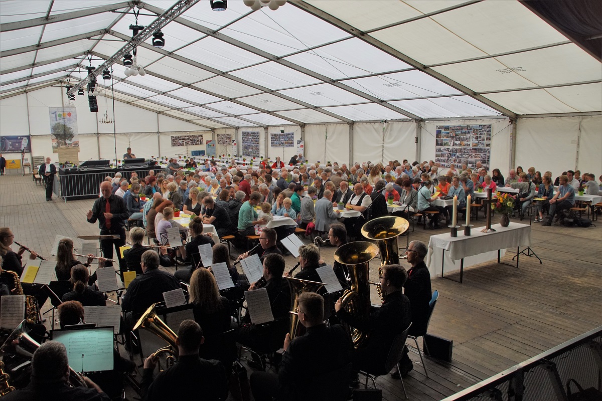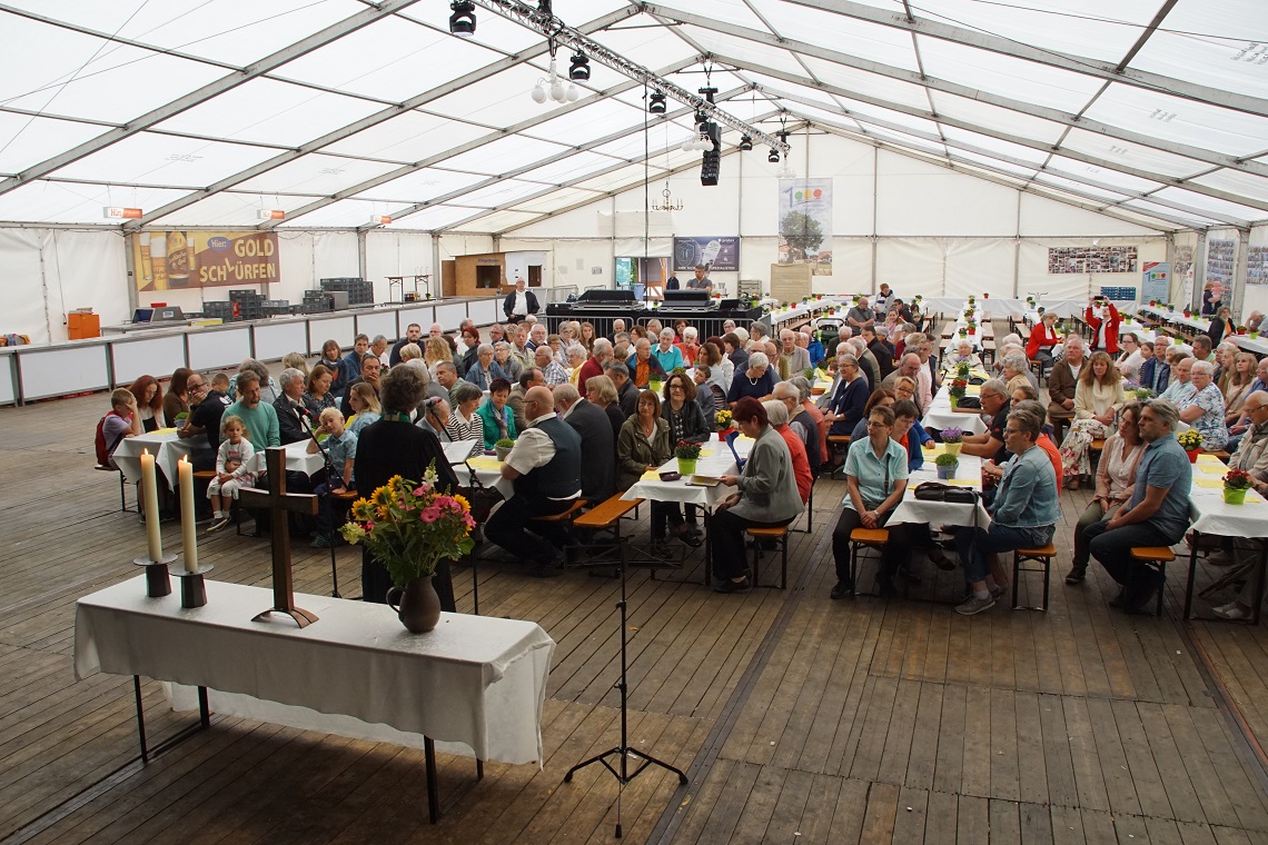 Unter der Losung „Gemeinschaft neu erleben“ hatte die Kirchengemeinde am ersten Julisonntag zum Gottesdienst im Festzelt „Unter den Eichen“ eingeladen.