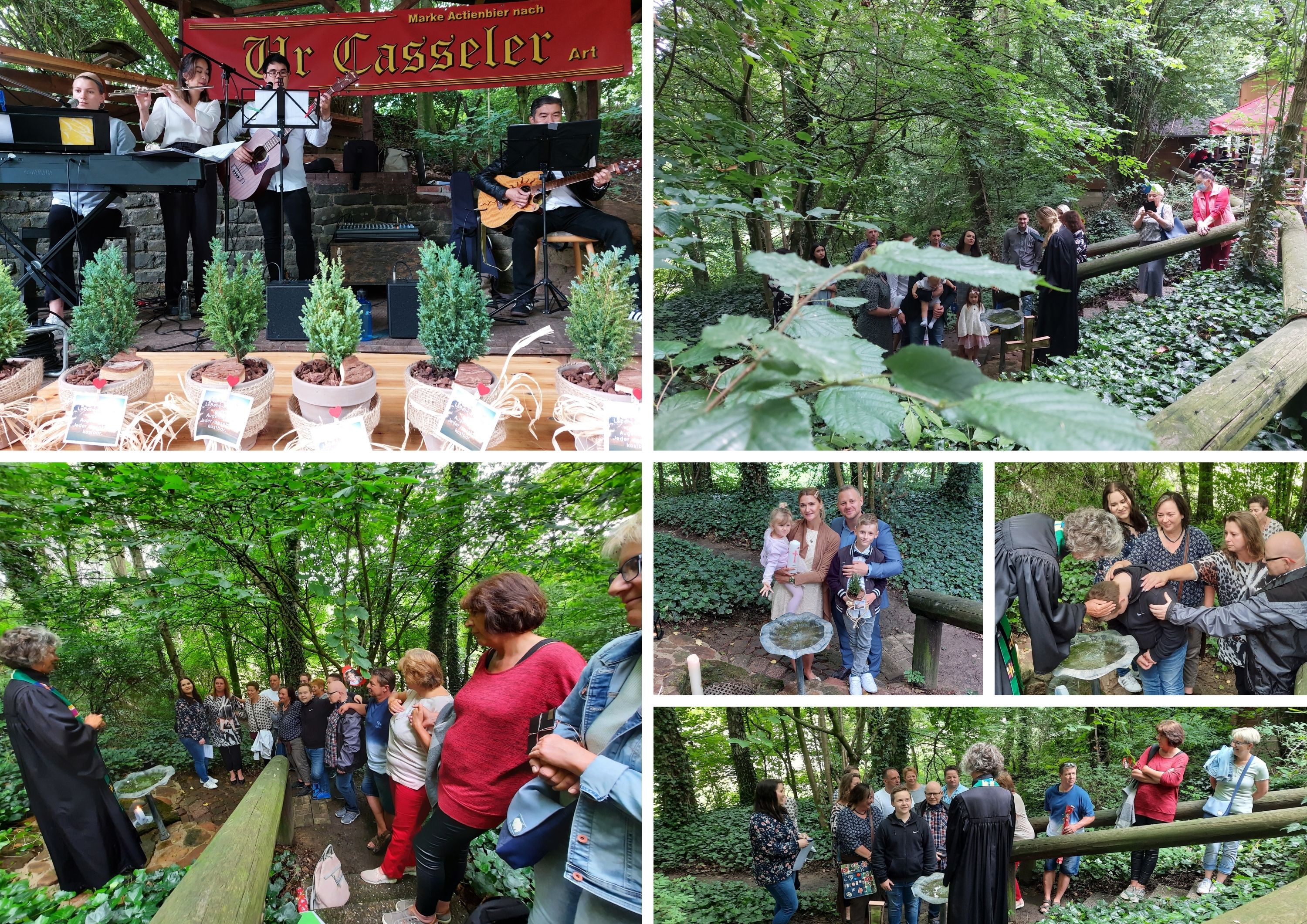 Nacheinander fanden die Taufen statt. Jede Familie hatte ihre eigene Zeit und ihren ganz eigenen individuell gestalteten Gottesdienst. Die Atmosphäre am Taufbecken war dicht und locker zugleich und man könnte spüren, dass gerade unter dem Blätterdacht der hohen Bäume, Gott näher zu sein scheint.