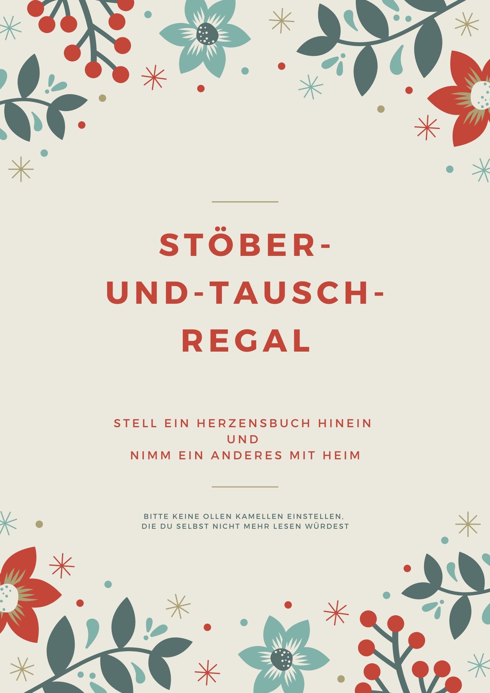 Seit Januar steht ein Bücher - Stöber- und Tauschregal in der Arche. Es steht neben der Tür zum großen Saal im Erdgeschoss. Bitte bedienen Sie sich / bedient euch, wenn Bedarf es Bedarf an Lesestoff gibt. Es gilt die Regel: ein Buch mitnehmen, ein Buch hineinstellen.