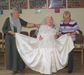In einem der letzten Blickpunkte wurden alle Frauen zu diesem "Traumnachmittag" eingeladen und lautes Stimmengewirr quoll uns schon beim Betreten der Arche an diesem Nachmittag entgegen. Natürlich hatten alle Frauen etwas von ihrer Traumhochzeit mitgebracht. Schon vor Beginn des Frauenkreises tauschten alle ganz rege ihre mitgebrachten Fotografien und Erinnerungen aus. Das war ja ein fröhliches Geschnatter! Nach der Andacht, die den Frauen etwas von Träumen aus der Bibel berichtete, dem gemeinsamen Kaffeetrinken und dem Begrüßungskanon “Lasst uns miteinander singen, loben, danken dem HERRN”, nahmen die Frauen im Stuhlkreis ihre Plätze ein. Die “Spuren” im Sand leiteten unsere Traumwelt ein. Wir hörten uns untereinander um, was jeder von uns träumt. Sind unsere Träume Schäume, träumen wir farbig oder schwarz-weiss und wissen wir am Morgen noch, was wir so alles in der Nacht geträumt haben? Diese und viele Fragen mehr fanden im regen Austausch statt. Eine Meditation “Träumerische Entspannung” mit leiser Hintergrundmusik führte zu unserem Hochzeitstraum. Nun wurden noch einmal Erinnerungen an diesem unvergesslichen Tag ausgetauscht. Die Frauen zeigten, was sie von ihrer Hochzeit mitgebracht hatten. Da wurden wunderbare Porzellan-Obstschalen gezeigt, ein hübsche Vase – Design aus dieser Zeit-, Brautschleier und Krönchen kamen zum Vorschein. Auch viele Fotografien wanderten von Hand zu Hand. Einige Frauen hatten ein Hochzeitsbild mit Blumenstreukindern vor der Vollmarshäuser Kirche. Dabei haben wir festgestellt, dass dreiviertel der Frauen in der Vollmarshäuser Kirche in den fünfziger Jahren des vorigen Jahrhunderts geheiratet hatten. Die wohl originellste Hochzeitserinnerung hat Frau Ring mitgebracht, ihr nun schon 54 Jahre altes Hochzeitskleid. Es ist ein Korsagen – Hochzeitskleid mit Tellerrock, dazu eine Spitzenbluse, der Schleier mit einem Krönchen geziert und die Hochzeitsschuhe. Das Kleid wurde, wie bei den meisten Frauen von einer Schneiderin handgenäht. Bewundernswert waren die kleinen zierlichen und regelmäßigen Nähte. Abgerundet hat diesen schönen Nachmittag der Sitztanz von Frau Kramer. Farbenfrohe Tücher flatterten zur Musik des “Zillertaler Hochzeitsmarsches”. Unser Vikar, Herr Helwig, beendete den Nachmittag mit einem Gebet, dem “Vaterunser” und dem Segen. Einen “süßen Traum” in Form eines Stückes “Kalten Hund” konnte jede Frau mit auf den Heimweg nehmen und so am anderen Tag beim Kaffee noch einmal an den Traumnachmittag mit seinen Traumerinnerungen denken.