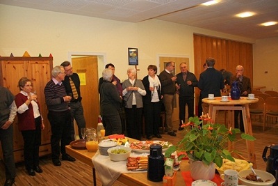 Leckere Häppchen, die der Kirchenvorstand mitgebracht hatte, füllten die nun langsam knurrenden Mägen. Nach genügend Zeit für anregende Gespräche und Austausch gab es einen kleinen raschen Jahresrückblick 2012, der uns allen mit Erstaunen vor Augen führte, wie reich beschenkt wir im vergangenen Jahr wurden. Gut gelaunt und voller Vorfreude auf das neue gemeinsame Jahr machten wir uns auf den Heimweg.