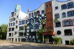 Ein paar Häuser vom Lutherhaus entfernt steht das Melanchthon-Haus. Es ist ein Renaissancebauwerk aus dem Jahr 1536. Hier lebte Philipp Melanchthon seit 1539 mit seiner Familie. Die Räume sind seitdem fast unverändert erhalten geblieben. In diesem Haus lebte und starb der ReformatorPhilipp Melanchthon. Nicht versäumen wollten wir das Luther-Melanchthon-Gymnasium in der Schillerstraße. Nach Entwürfen des bekannten österreichischen Künstlers Friedensreich Hundertwasser ist diese Schule neu gestaltet worden. Ursprünglich handelte es sich um einen typischen DDR-Plattenbau. Dadurch das Hundertwasser einen Zwiebelturm aufs Dach gesetzt hatte, dass er Dachterrassen angelegt hat und Bäume aus Fenstern herauswachsen ließ, sowie farbenfrohe Säulen aufstellte, hat er dem Ganzen eine für Hundertwasser bekannte Architektur gegeben.