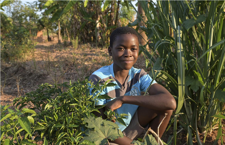 | Unsere lokale Partnerorganisation vermittelt an Schulen in Malawi die Prinzipien der Permakultur. So können Kinder und ihre Eltern jetzt regelmäßig frisches Obst und Gemüse ernten. Bislang litten viele Familien in den Monaten vor der Ernte Hunger. |