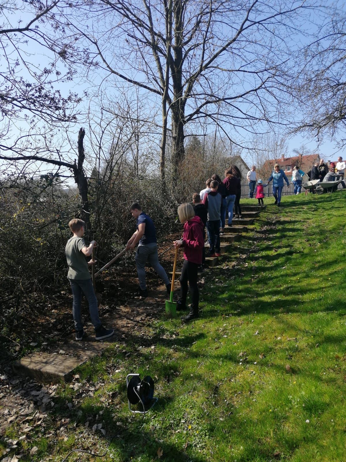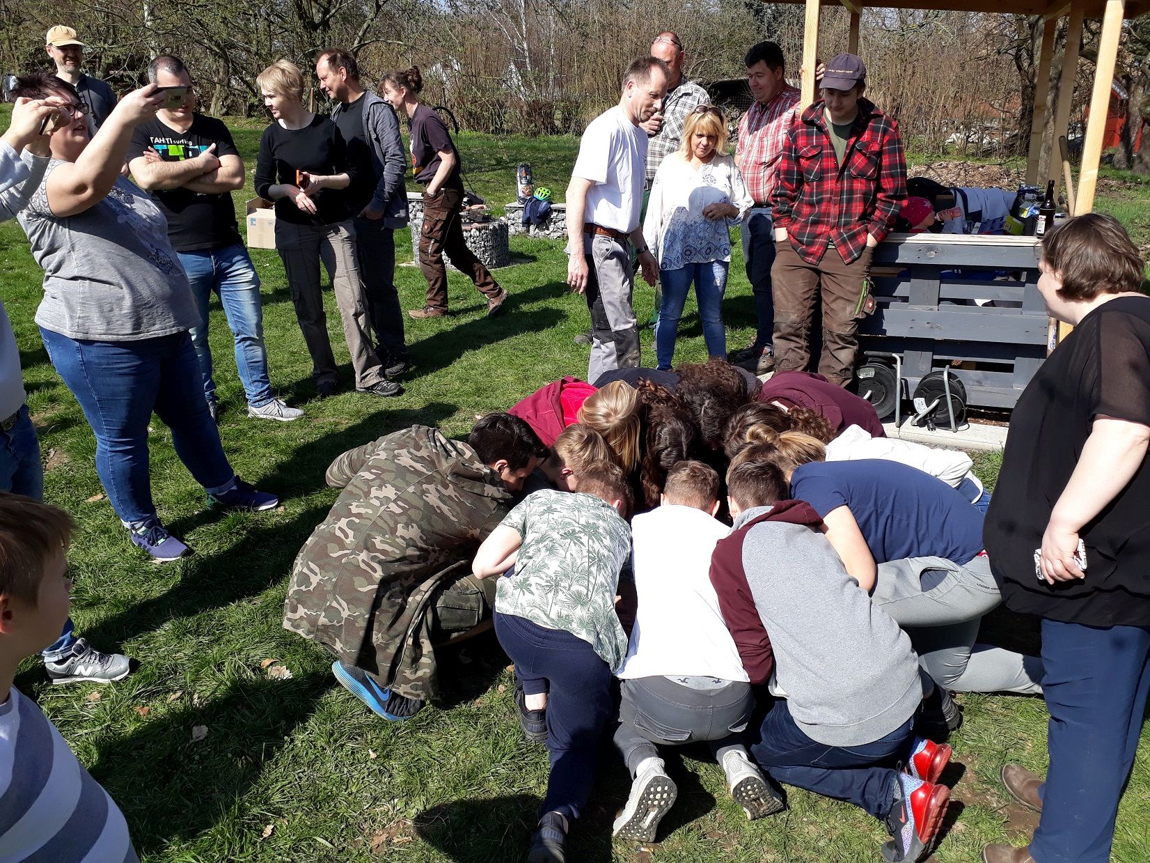 Bereits zum dritten Mal war die Konfirmandengruppe aufgerufen sich ein Projekt zur Gestaltung des Archegartens gemeinsam mit den Eltern zu überlegen und zu verwirklichen. Nachdem die Konfis 2017 den Grillplatz gestalteten und die Konfis 2018 das Schnuddelhäuschen bauten, hatten die Konfis 2019 eine ganz andere Idee: Sie stellten einen Fahnenmast in den Archegarten. An zwei Samstagen wurde dieses Projekt mit Eltern und Konfis, mit Freude und Spaß, Bratwurst und Apfelsaft verwirklicht. Alle Konfis waren beteiligt als es hieß Loch buddeln, Fundament setzen, Erde verteilen, Beton mischen und vieles mehr. In den frischen Beton drückten dann alle ihre Hände, sodass sie sich im Archegarten verewigten. Am folgenden Samstag wurde dann der Mast unter viel Hallo und Blitzlichtgewitter gesetzt. Auf der Konfirmandenfreizeit, die in der Woche vor Ostern stattfindet, wird nun eine Flagge gestaltet, die nach dem Vorstellungsgottesdienst gehisst wird.