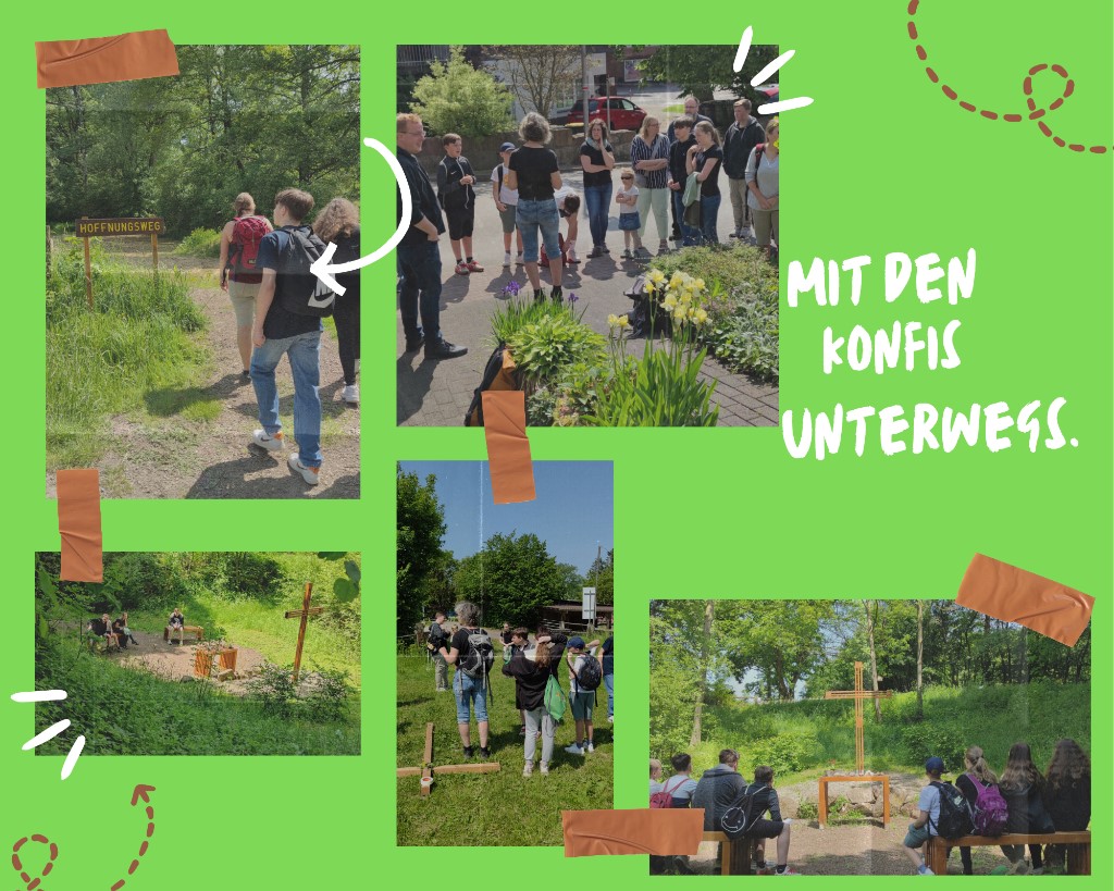 Am Pfingstsamstag startete die neue Konfergruppe mit vier Mädchen und sechs Jungs in ihr Konferjahr mit einem Pilgertag vom Mitteltalhof in Kaufungen nach Vollmarshausen. Nach Kennenlernspielen und erstem Beschnuppern erlebten wir der Hoffnungsweg, der alle sehr beeindruckte und den wir mit einer Andacht abschlossen. Der Fußweg nach Vollmarshausen über die Stiftskirche und den Ruheforst war ziemlich anstrengend. Zum einen lag dies an den sommerlichen Temperaturen und zum anderen am schweren Kreuz, das die Jugendlichen selbstständig tragen mussten. Jede und jeder hat es ein Stück des Weges getragen, die einen nur wenige hundert Meter und andere viele Kilometer, sodass sich eingefühlt werden konnte, was es bedeutet Lasten zu tragen. Auf dem Weg lernten wir uns anhand kleiner Interviews ein wenig kennen und alle kamen so mit allen ins Gespräch. Angekommen in Vollmarshausen wurde gegrillt und organisatorisches geklärt und mit einem Abendsegen beendeten wir diesen prall gefüllten und sehr schönen Tag. Wir, das Konferteam, freuen uns sehr auf das gemeinsame Jahr mit diesen jungen Menschen.